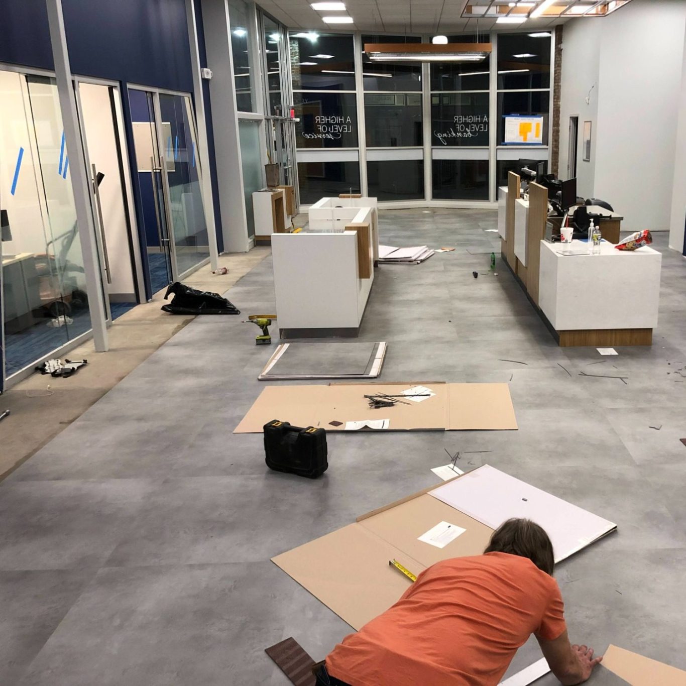 Full spectrum commercial flooring jobs with bare, uneven concrete to a smooth finished LVT and Carpet plank tile installation. Finished and ready to impress.